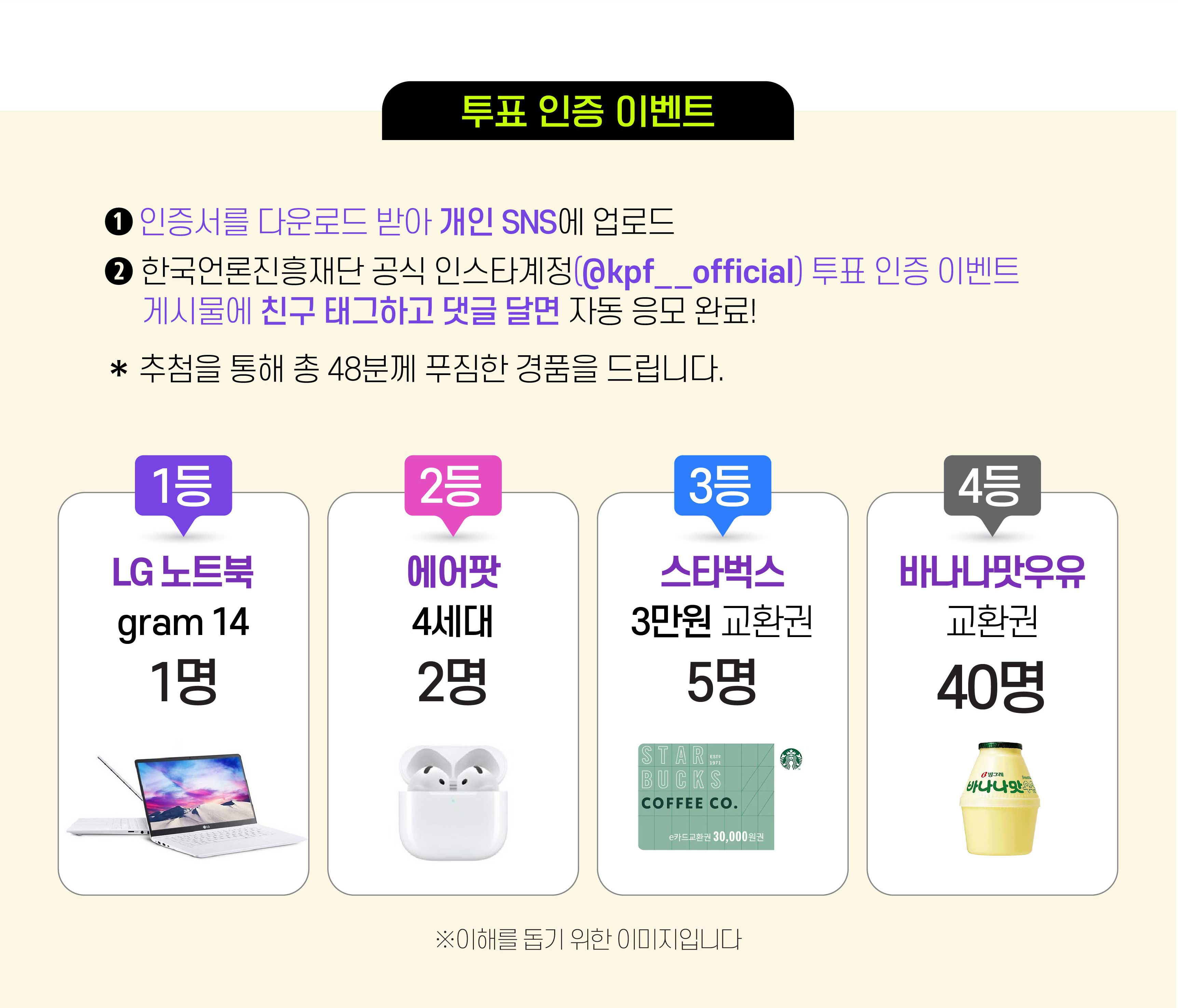| 시상내역 | 노트북 1명, 에어팟 2명, 스타벅스 교환권 5명, 바나나맛우유 교환권 40명 |