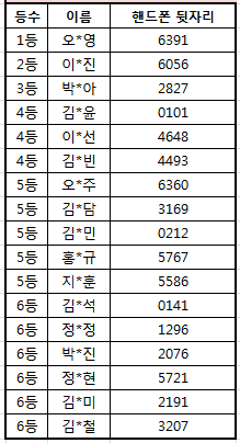 아래와 같이 우수자명단을 공지하며,