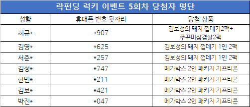 럭키! 락펀딩데이 퀴즈 이벤트 5회차 당첨자 안내