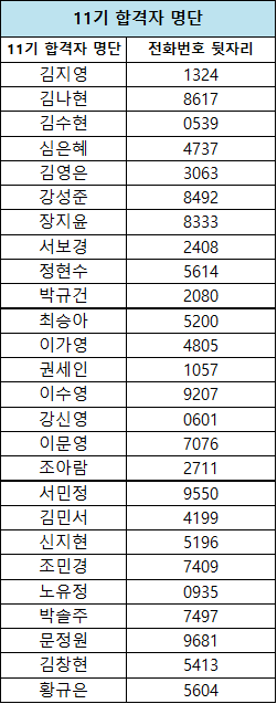 선발자 명단을 아래와 같이 공지합니다.