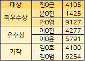 수상자분들께는 상금 지급 관련하여 개별 안내 문자가 나갈 예정입니다.