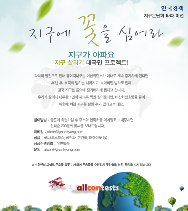 꽃씨를 보내드립니다.<마감> 페이지 정보 작성자 올콘 작성일 13-11-20 14:46 조회 34,451 댓글 0 본문 올콘회원 가입 후 메일로 주소를 보내주시면 꽃씨를 보내드립니다. 댓글목록 0 등록된 댓글이 없습니다.