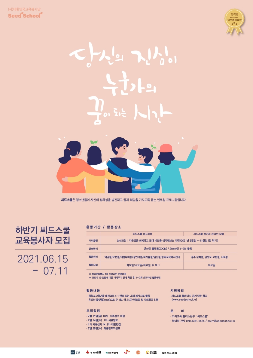 2021 하반기 청소년 멘토링 씨드스쿨 13기 교육봉사자 모집