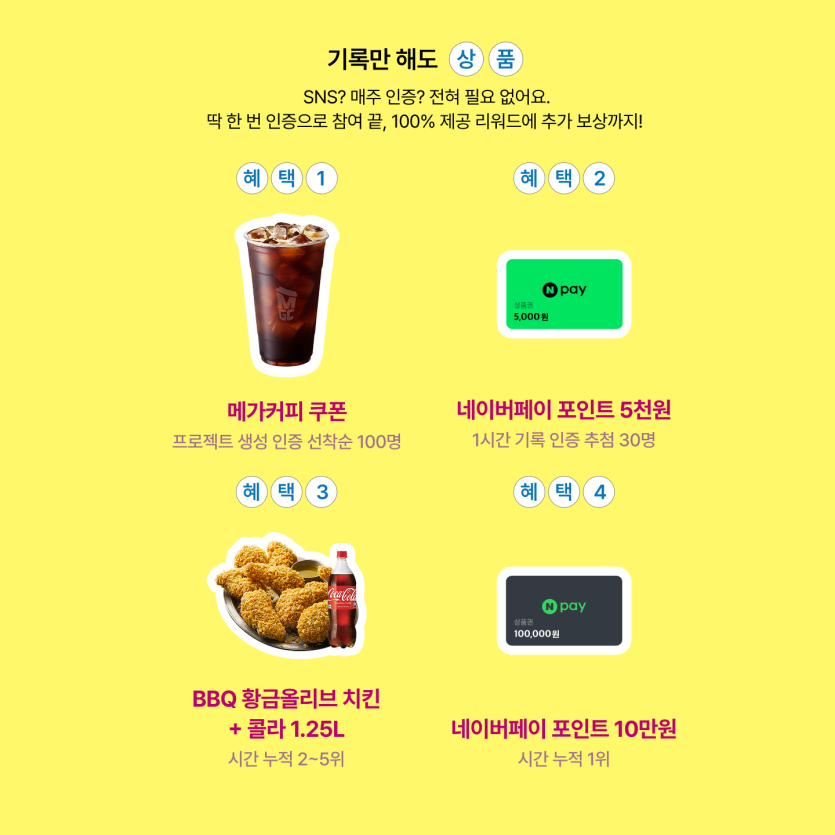 기록만 해도 ☕️🍗💰보상이 팡팡!