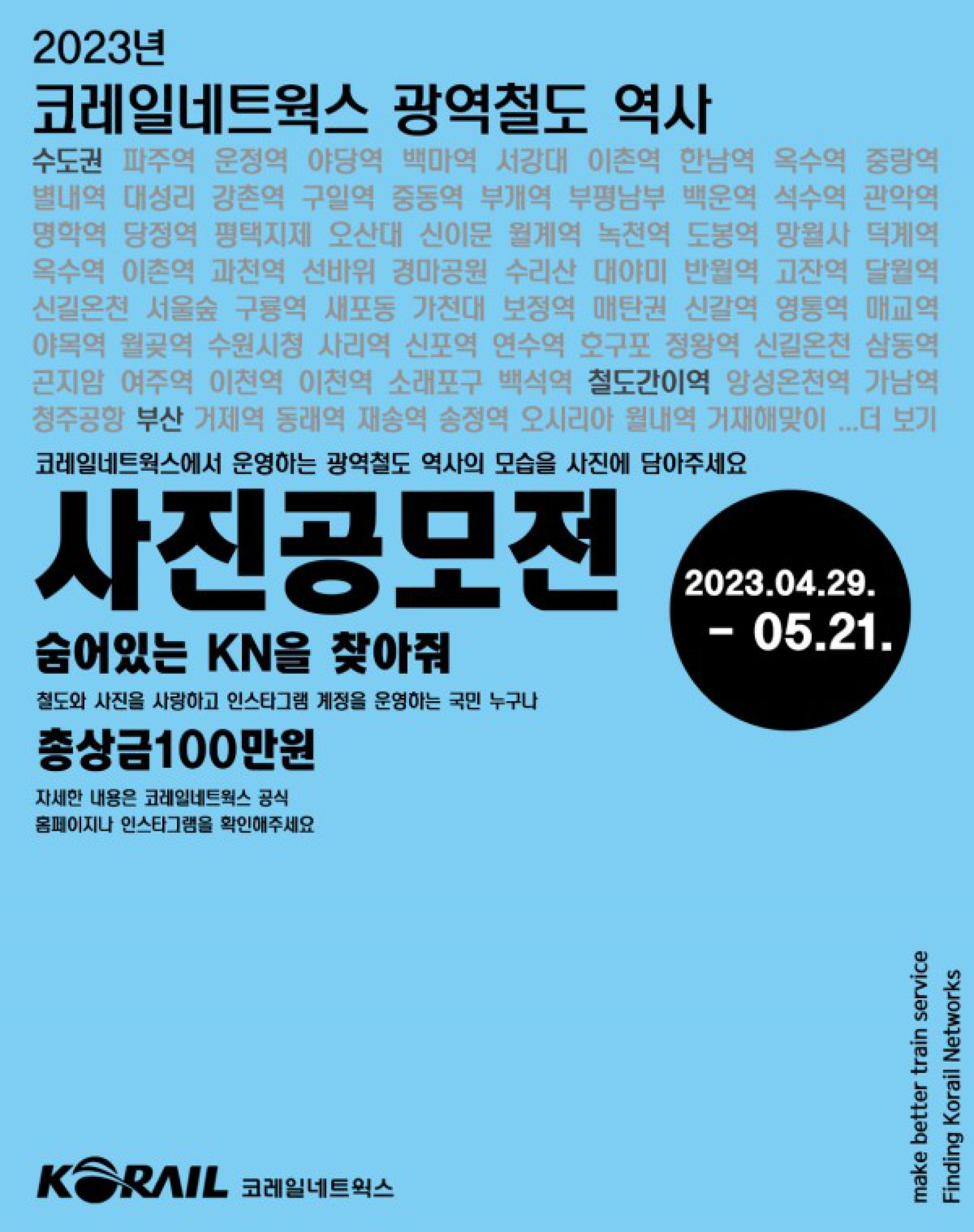 - 코레일네트웍스에서 광역철도 역사 사진공모전을 개최하오니