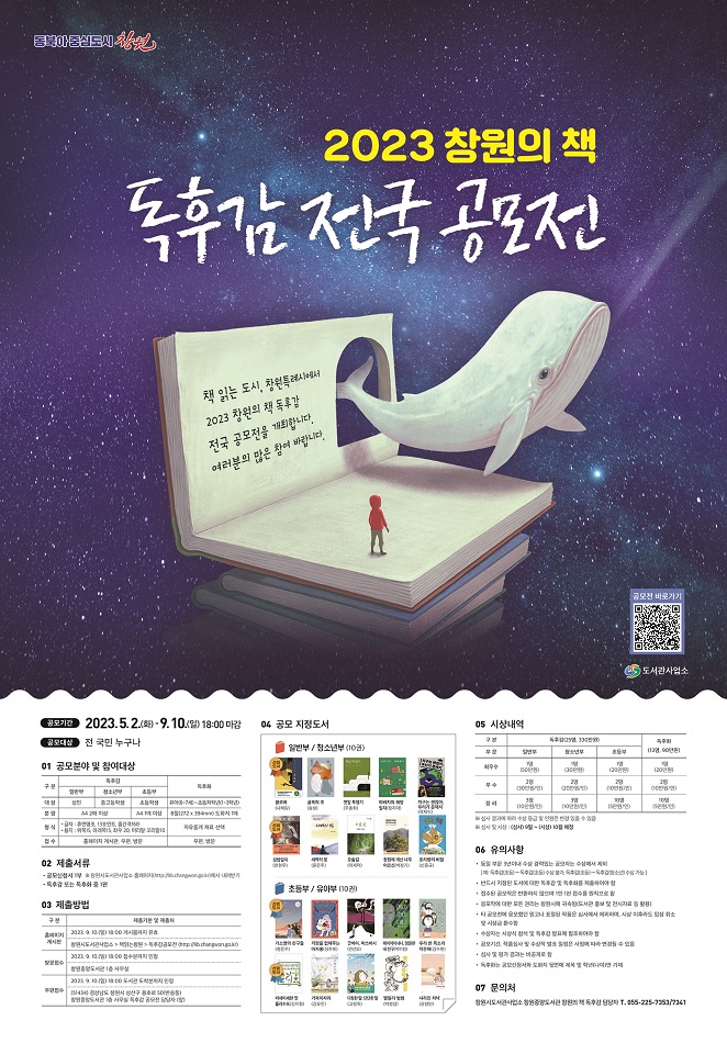 - '2023 창원의 책' 독후감 전국 공모전을 개최합니다.