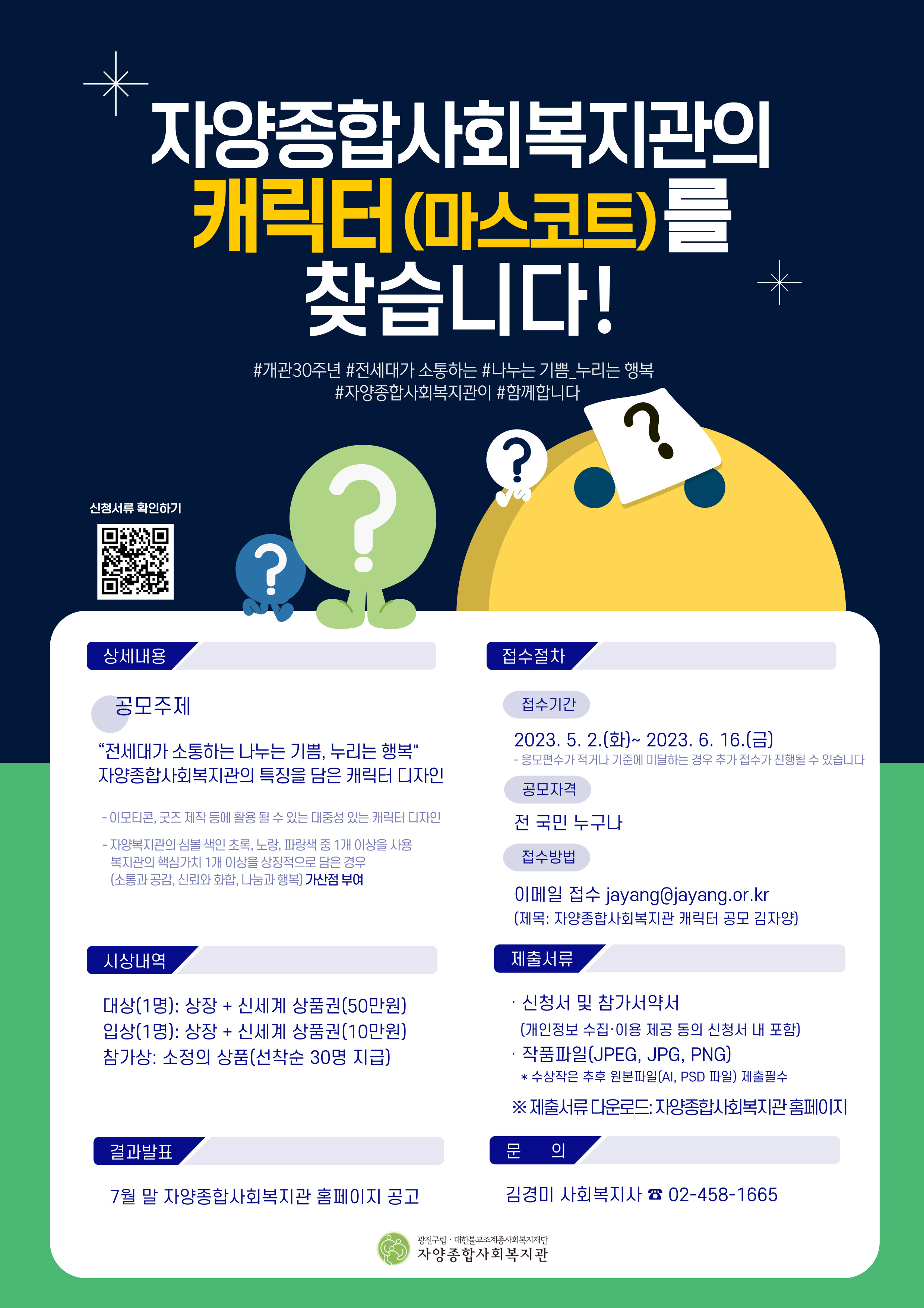 - 자양종합사회복지관 개관 30주년 기념 캐릭터(마스코트) 디자인 공모전