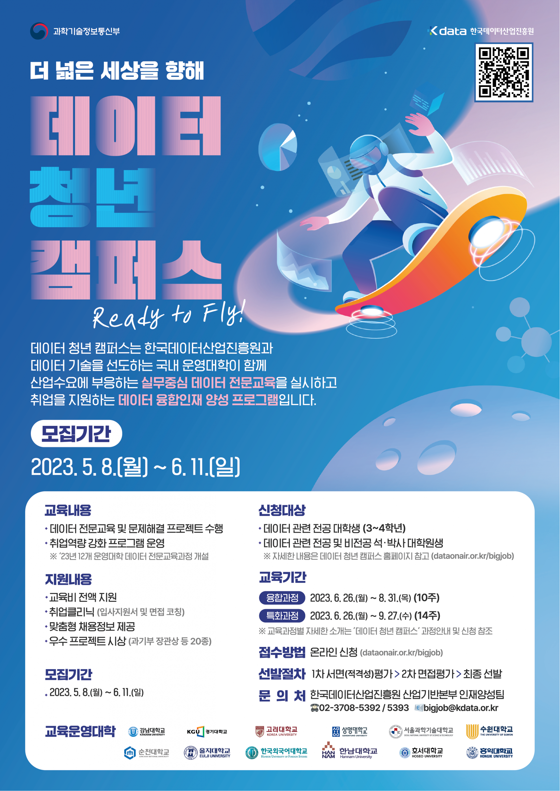 - 데이터 청년 캠퍼스는 한국데이터산업진흥원과 데이터 기술을