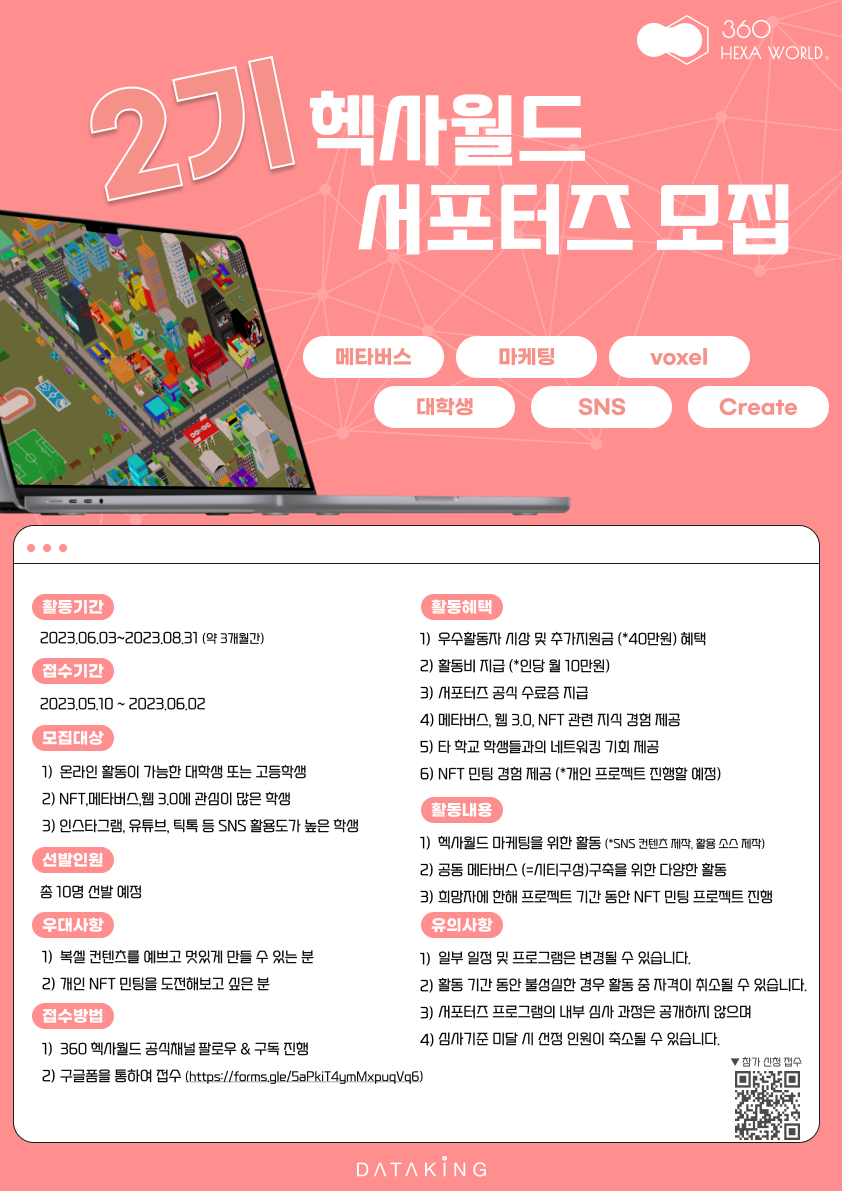 - 360 헥사월드를 같이 이끌어갈 헥사월드 서포터즈 2기를 모집합니다!