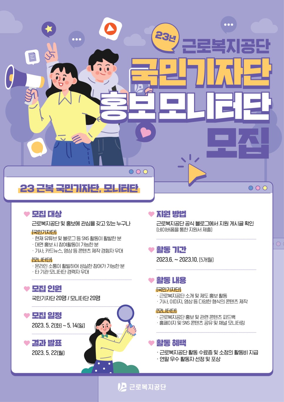 - 2023 근로복지공단 국민기자단 & 홍보 모니터단을 모집합니다.