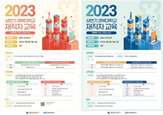 - 2023 상반기 경북대학교 재직자 교육(오프라인/온라인) 참가자를 모집합니다.