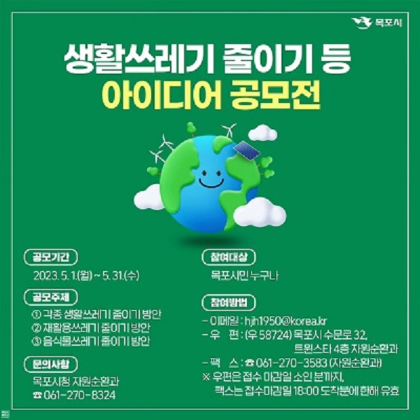 - '생활쓰레기 등 줄이기' 시민 아이디어 공모를 개최합니다.