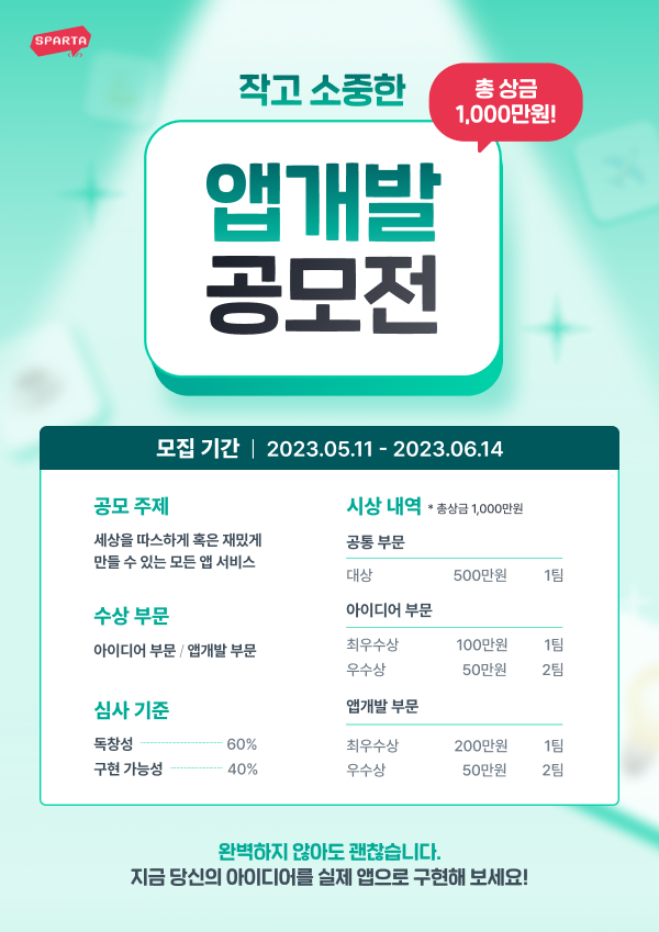 - 스파르타코딩클럽에서 '작고 소중한 앱개발' 공모전을 진행하오니