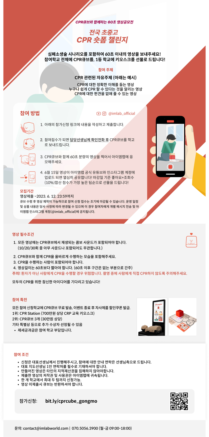 - 심폐소생술 숏폼 챌린지 학교대항전 공모전을 진행하오니