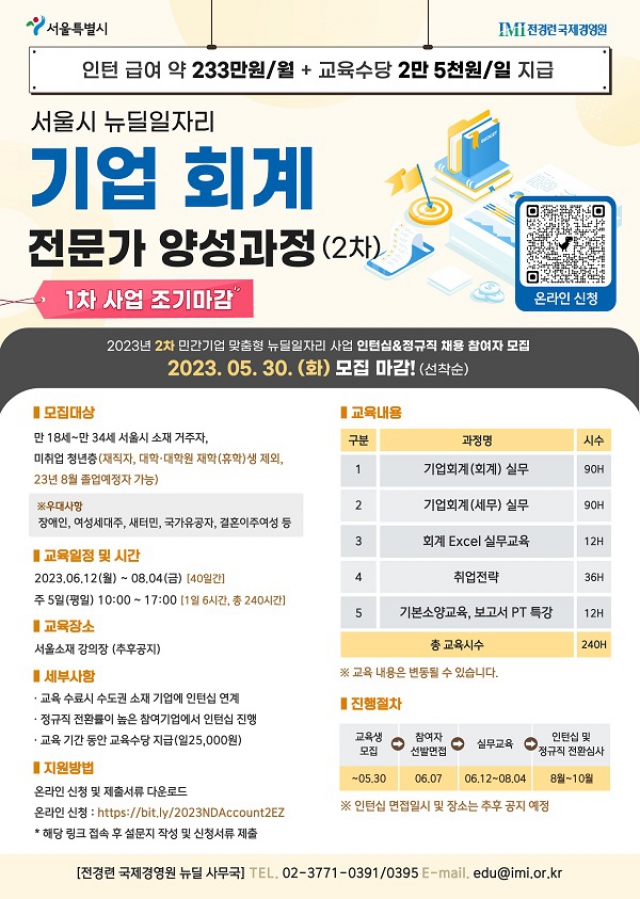 전경련 국제경영원 2차 서울시 뉴딜 일자리 경험 기업회계 전문가 양성과정 참여자 모집
