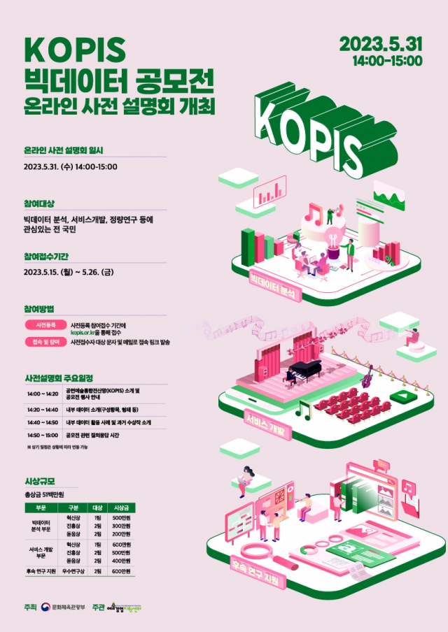 2023년 5월 31일, <제3회 KOPIS 빅데이터 공모전 온라인 사전 설명회>가 개최됩니다.