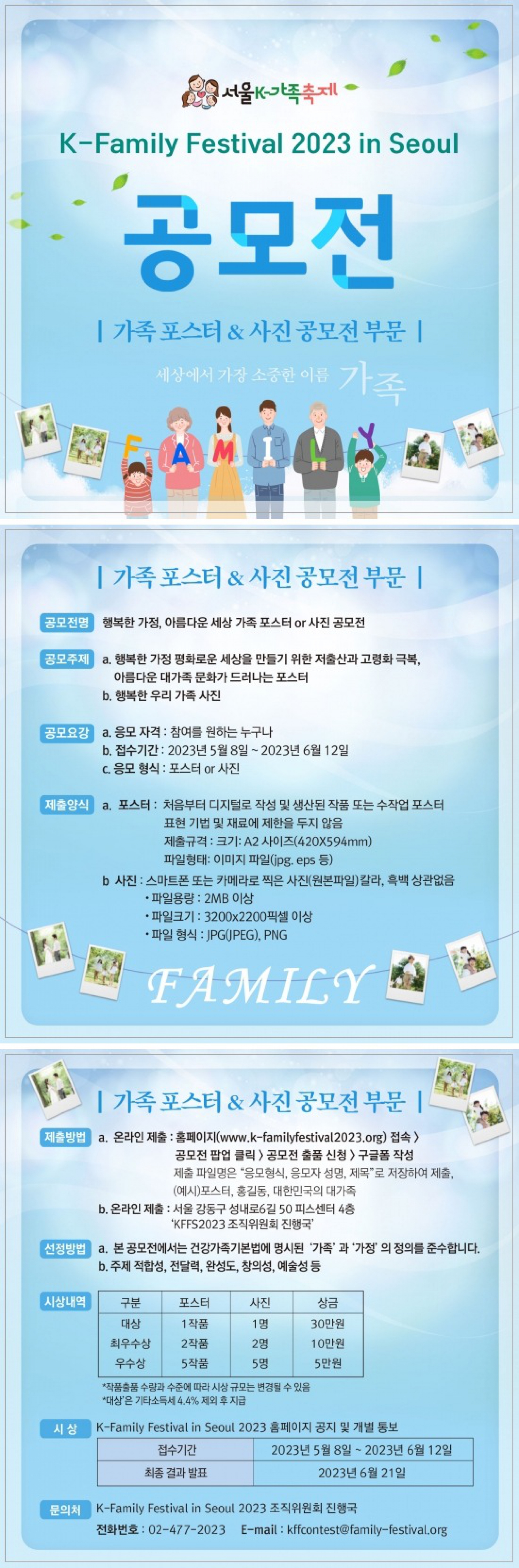 - 온라인 제출 : 홈페이지(www.k-familyfestival2023.org/) > 공모전 팝업 클릭 >