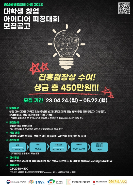 - 신청자격 : 창업 아이디어를 가지고 있는 충남도 소재 대학교 재학 또는