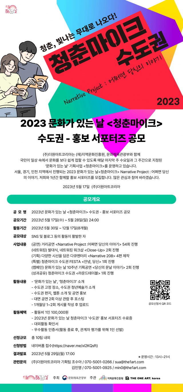 서울, 경기, 인천 지역에서 진행되는 2023 문화가 있는 날<청춘마이크>