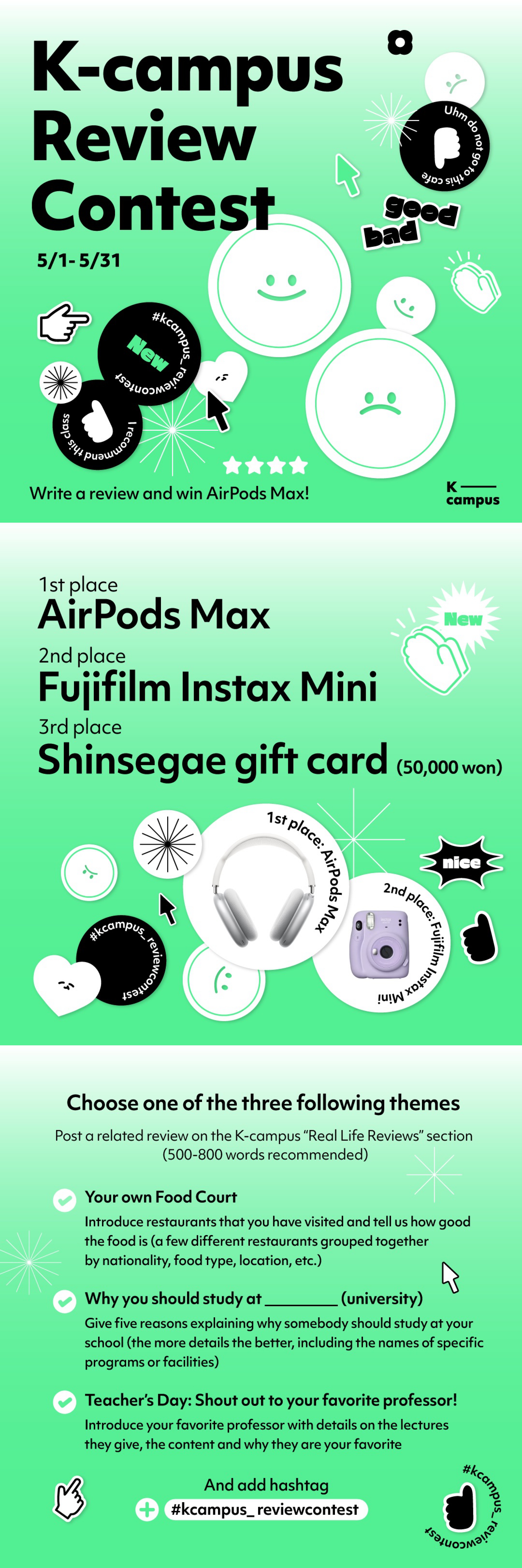 - 제 2회 K-campus Review Contest를 개최합니다.