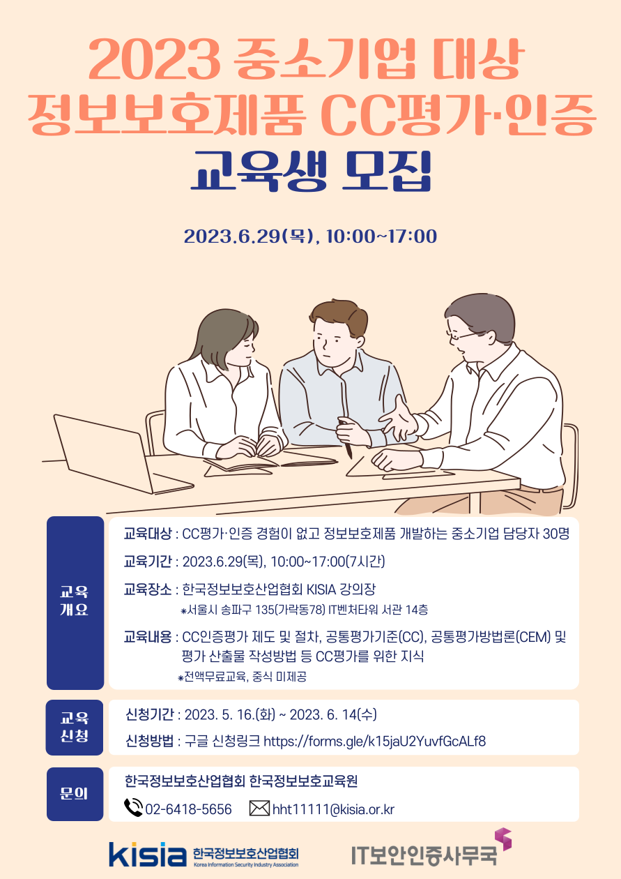 - KISIA 2023년도 1차 중소기업 대상 '정보보호제품 평가·인증 제도'