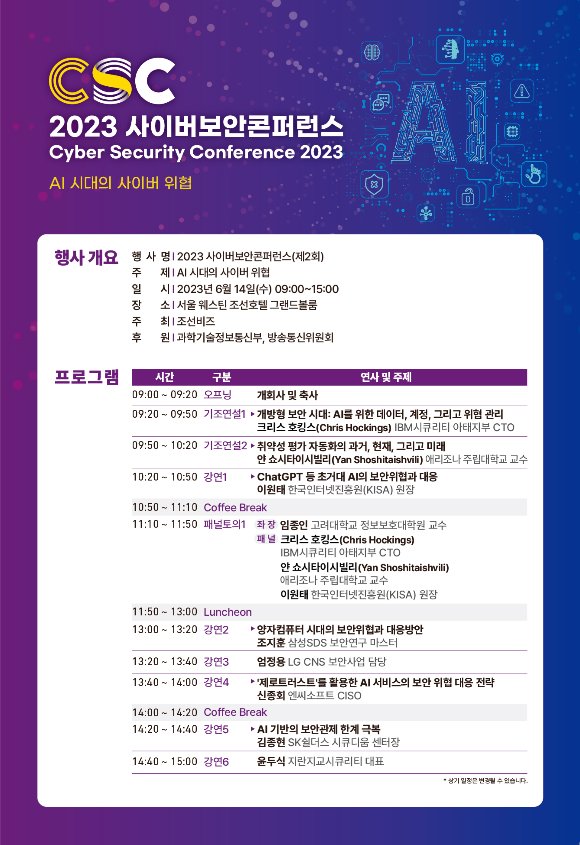 2023년 6월 14일(수) 웨스틴 조선호텔에서 사이버보안콘퍼런스를 통해