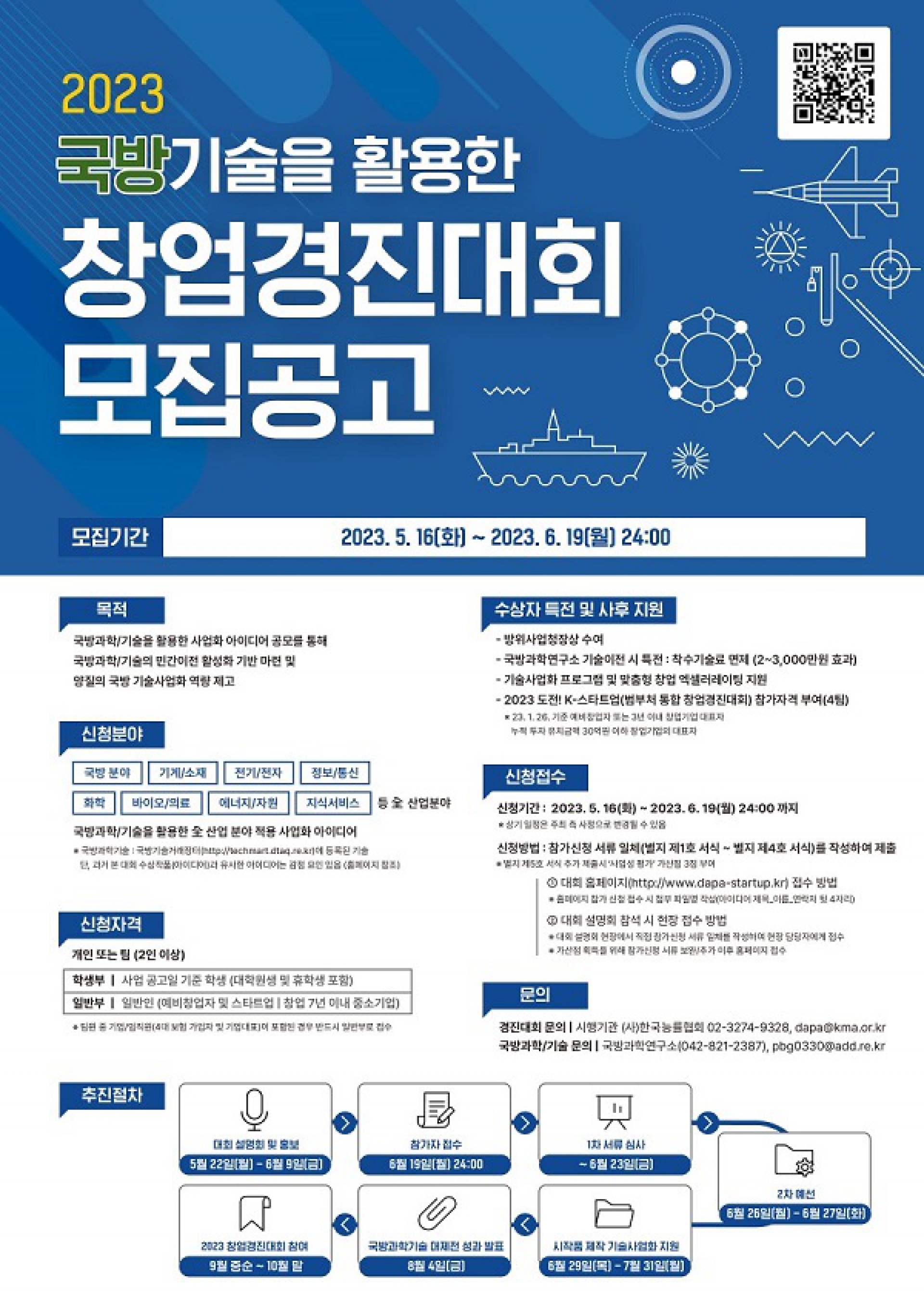 - 2023 국방기술을 활용한 창업경진대회를 개최합니다.