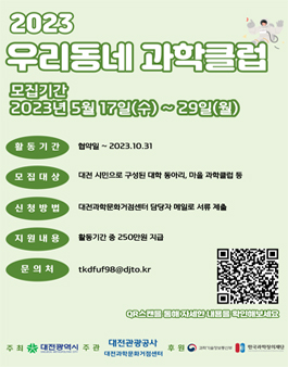 '2023 우리동네 과학클럽'을 아래와 같이 모집하오니 여러분들의