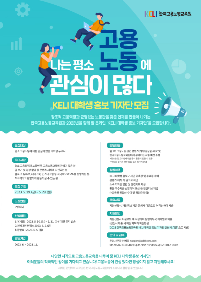 - 애드아이티 KELI 대학생 홍보 기자단 운영사무국 ☏ 02-6012-0007