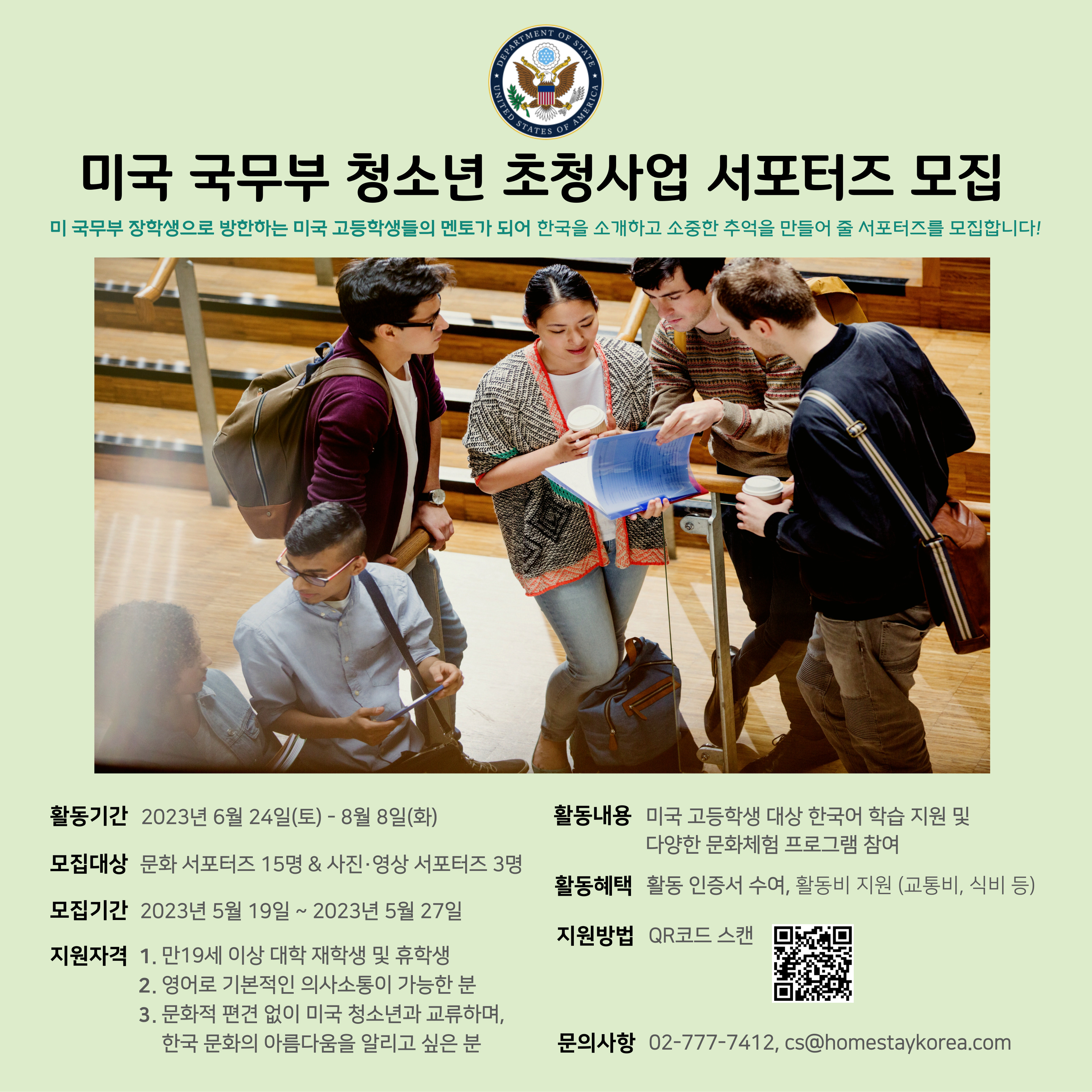 미국 국무부 청소년 초청사업 서포터즈 모집