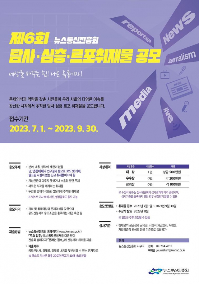- 제6회 탐사·심층·르포취재물 공모전을 모집합니다.