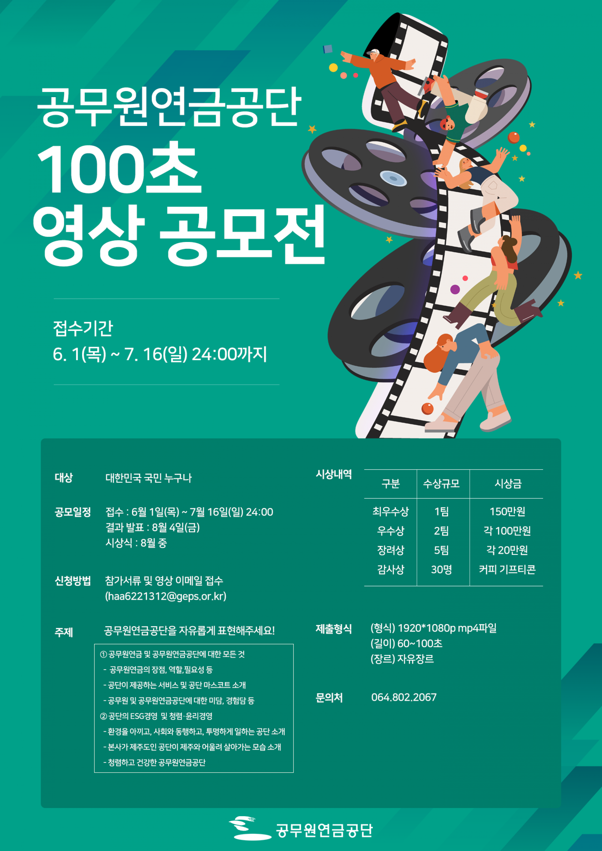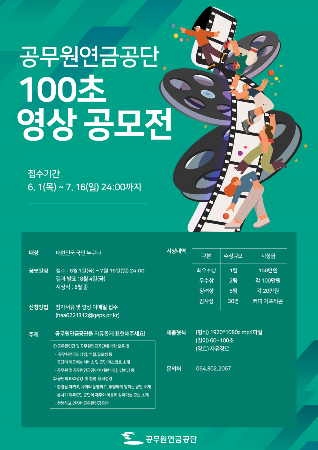 ※ 이메일 제목 : 2023년 공무원연금공단 100초 영상 공모전_성명(작품명)
