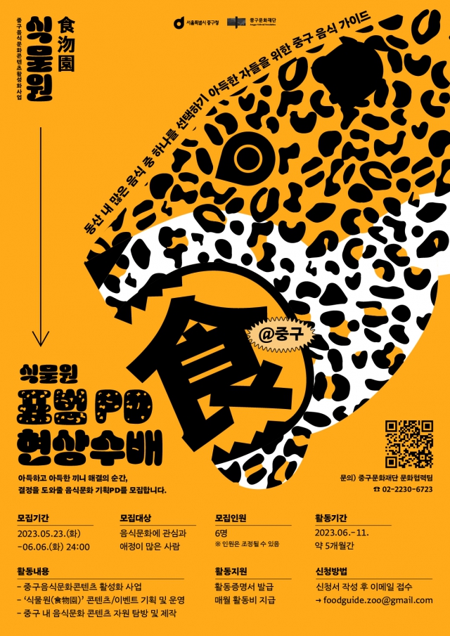 ‘중구음식문화 콘텐츠 활성화 사업’ 콘텐츠기획PD 모집