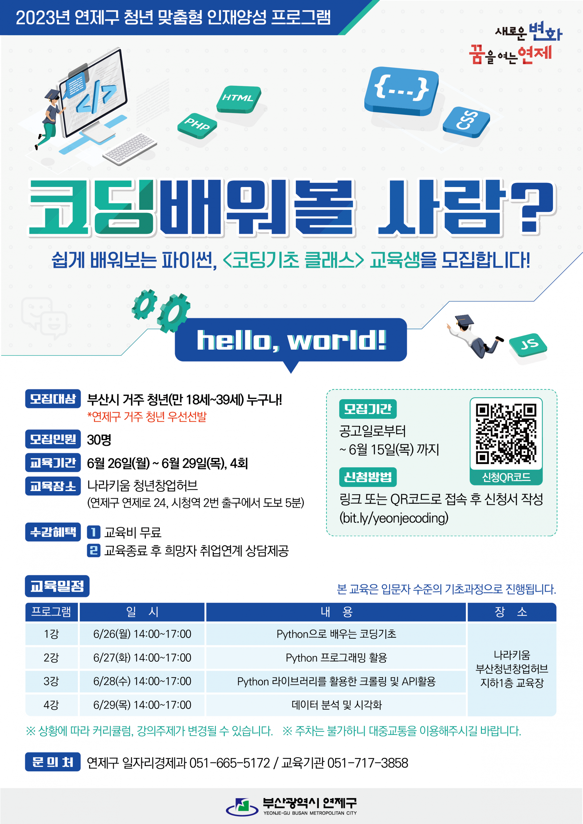 - 2023년 연제구 청년 맞춤형 인재양성 프로그램
