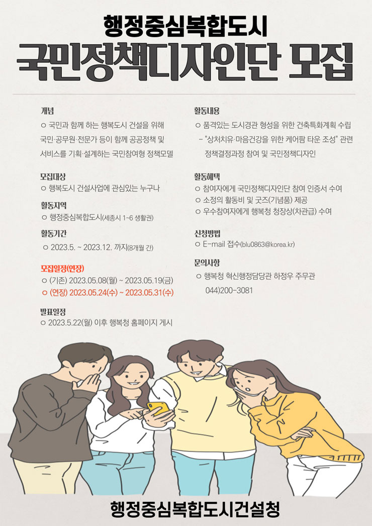 - 2023 행복도시(세종시) 국민정책디자인단을 모집합니다.
