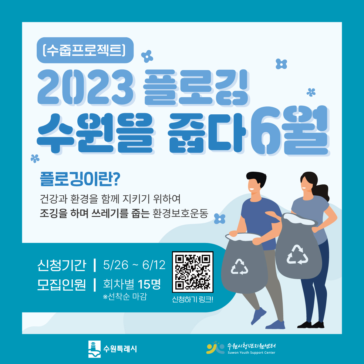- 수원시청년지원센터 플로깅(수줍프로젝트) 참여자를 모집합니다.
