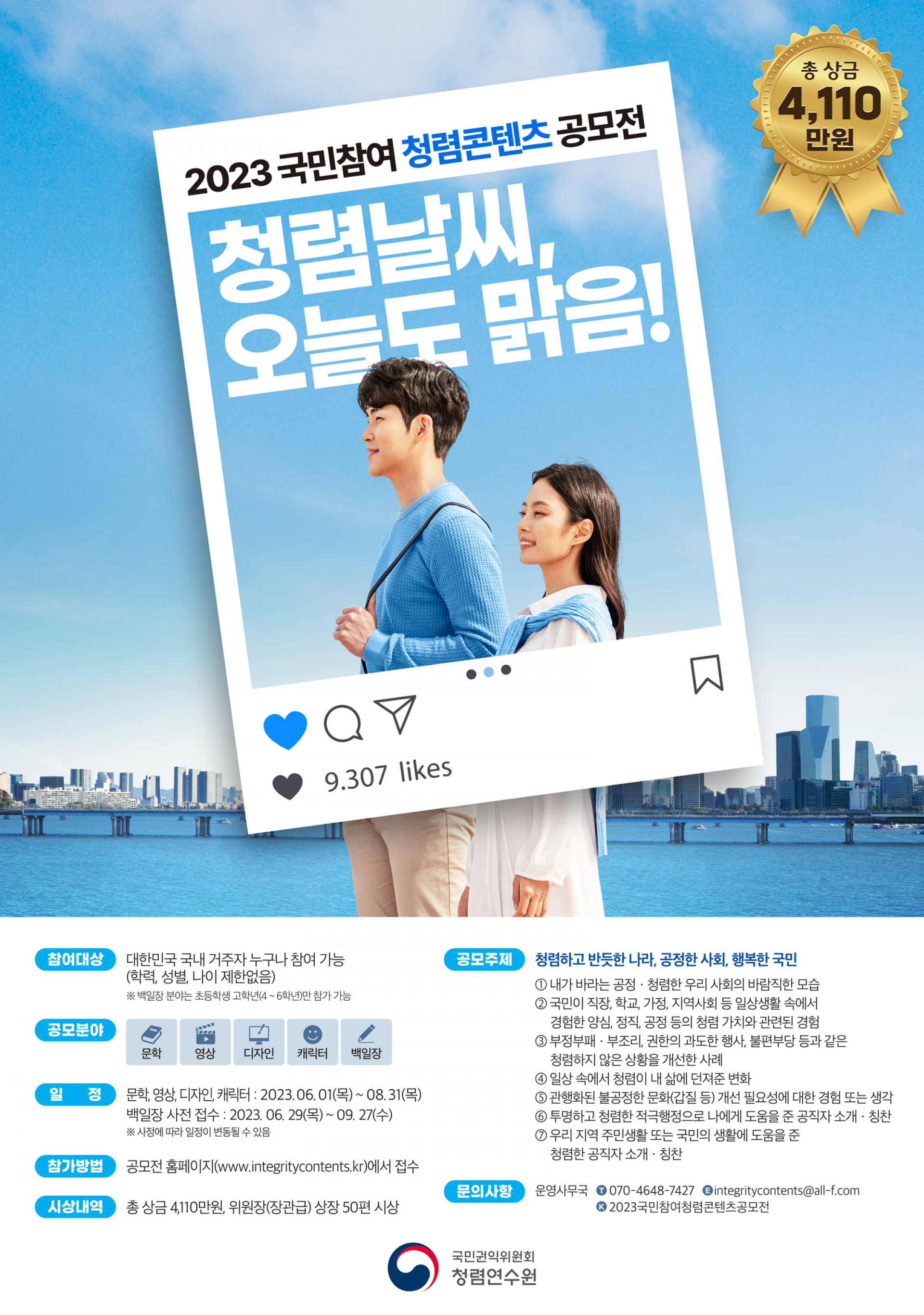 - 2023 국민참여 청렴콘텐츠 공모전을 진행하오니