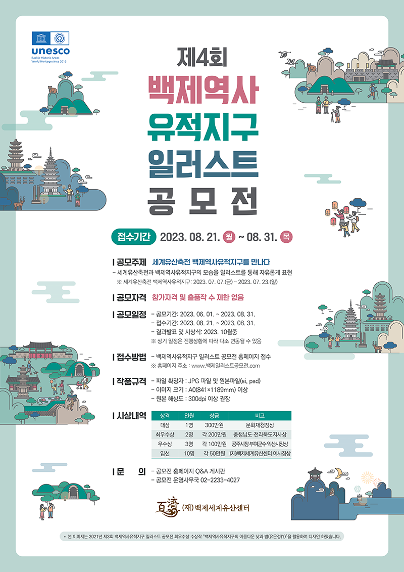 - 2023 백제역사유적지구 일러스트 공모전을 진행하오니