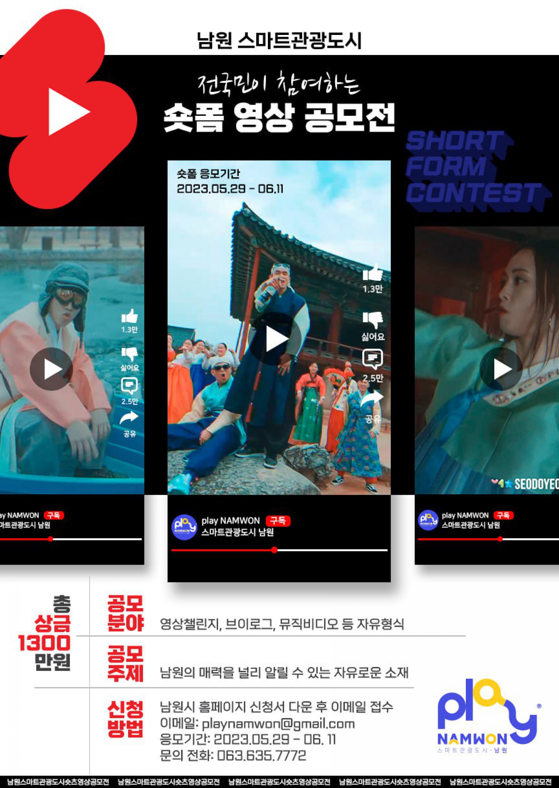 - 숏폼 영상 공모 담당자 이메일 ( playnamwon@gmail.com )