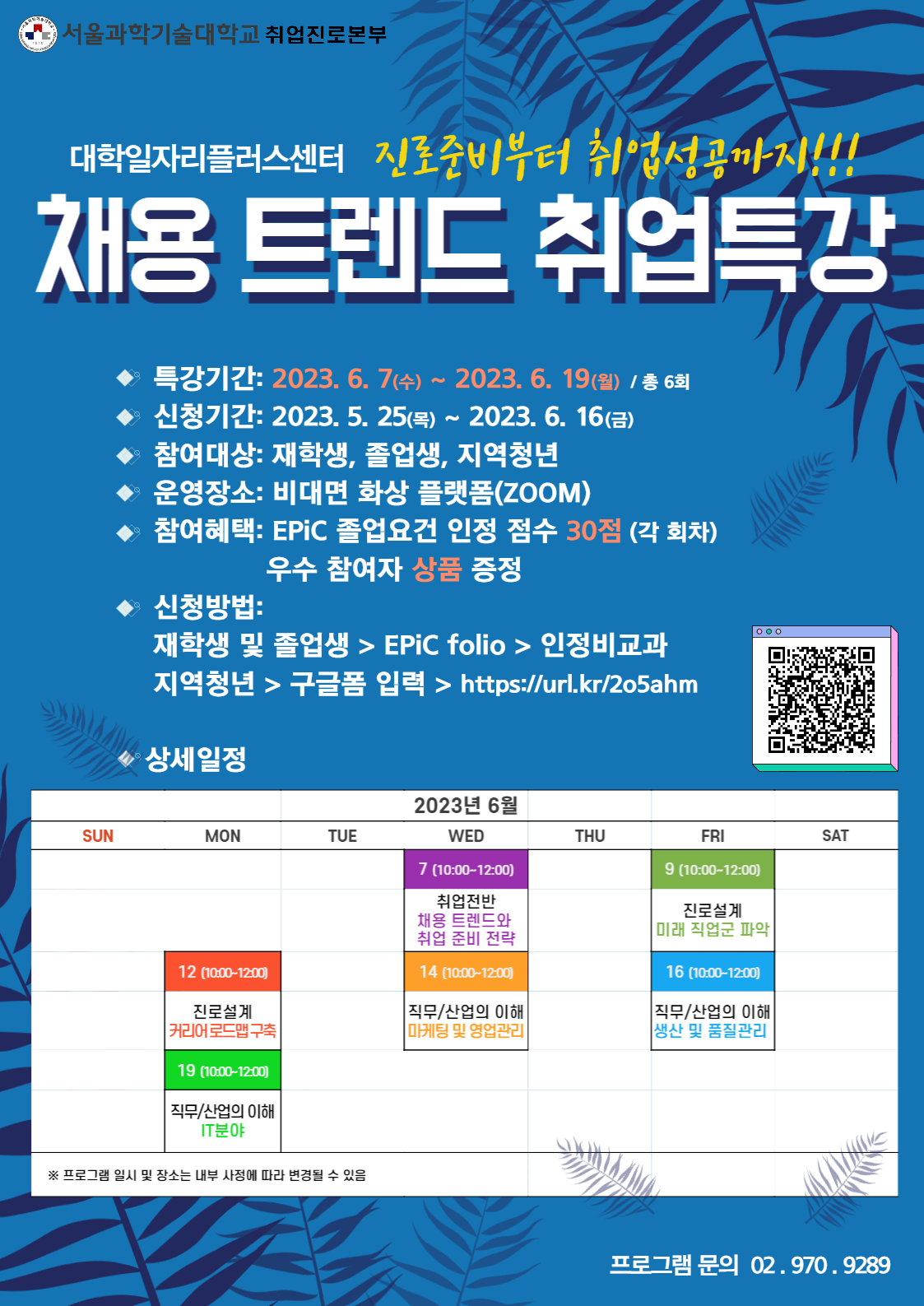 - 1회 2023. 6. 7.(수) 10:00~12:00 『채용 트렌드와 취업 준비 전략』