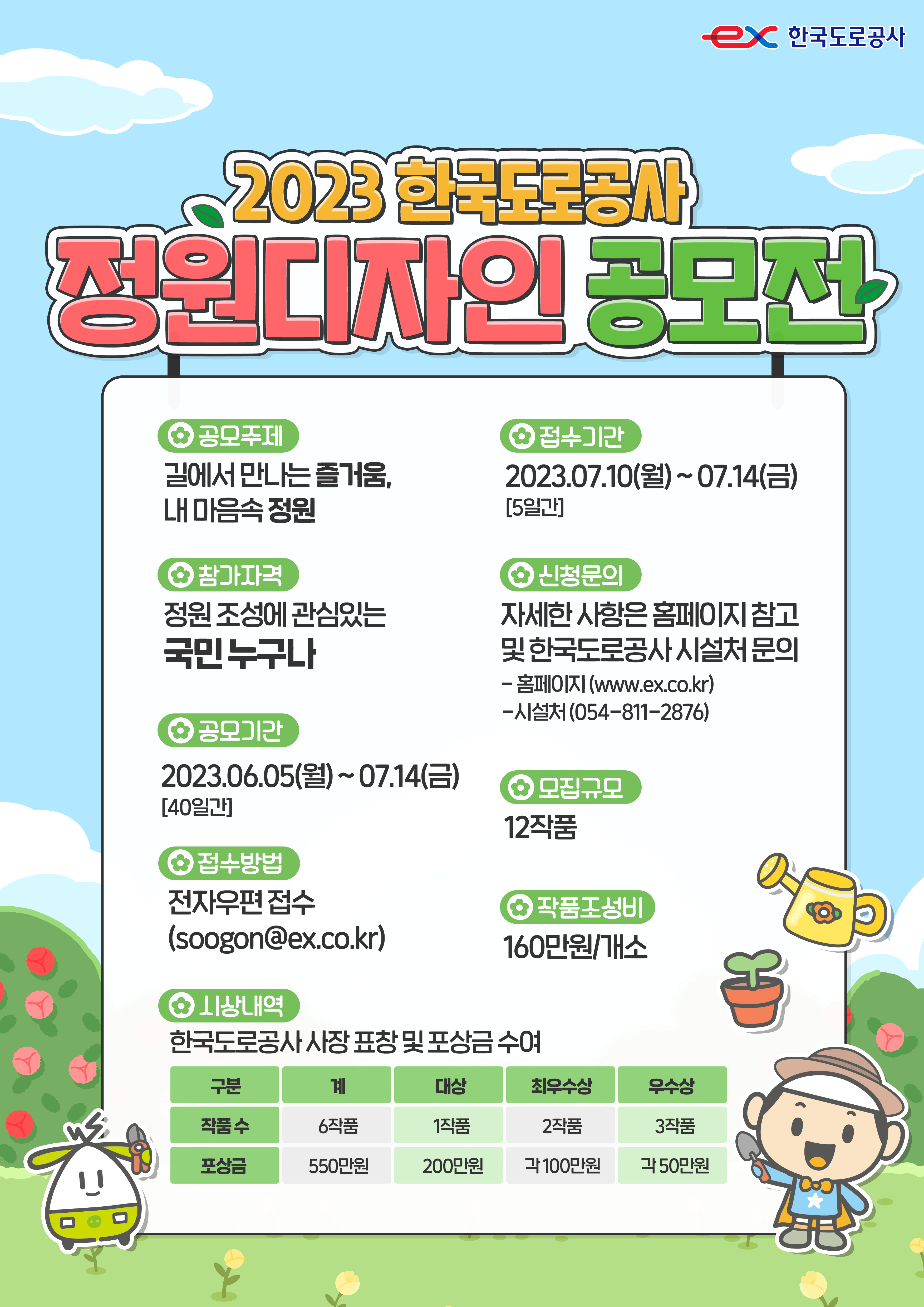 - 2023 한국도로공사 정원디자인 공모전을 개최합니다.