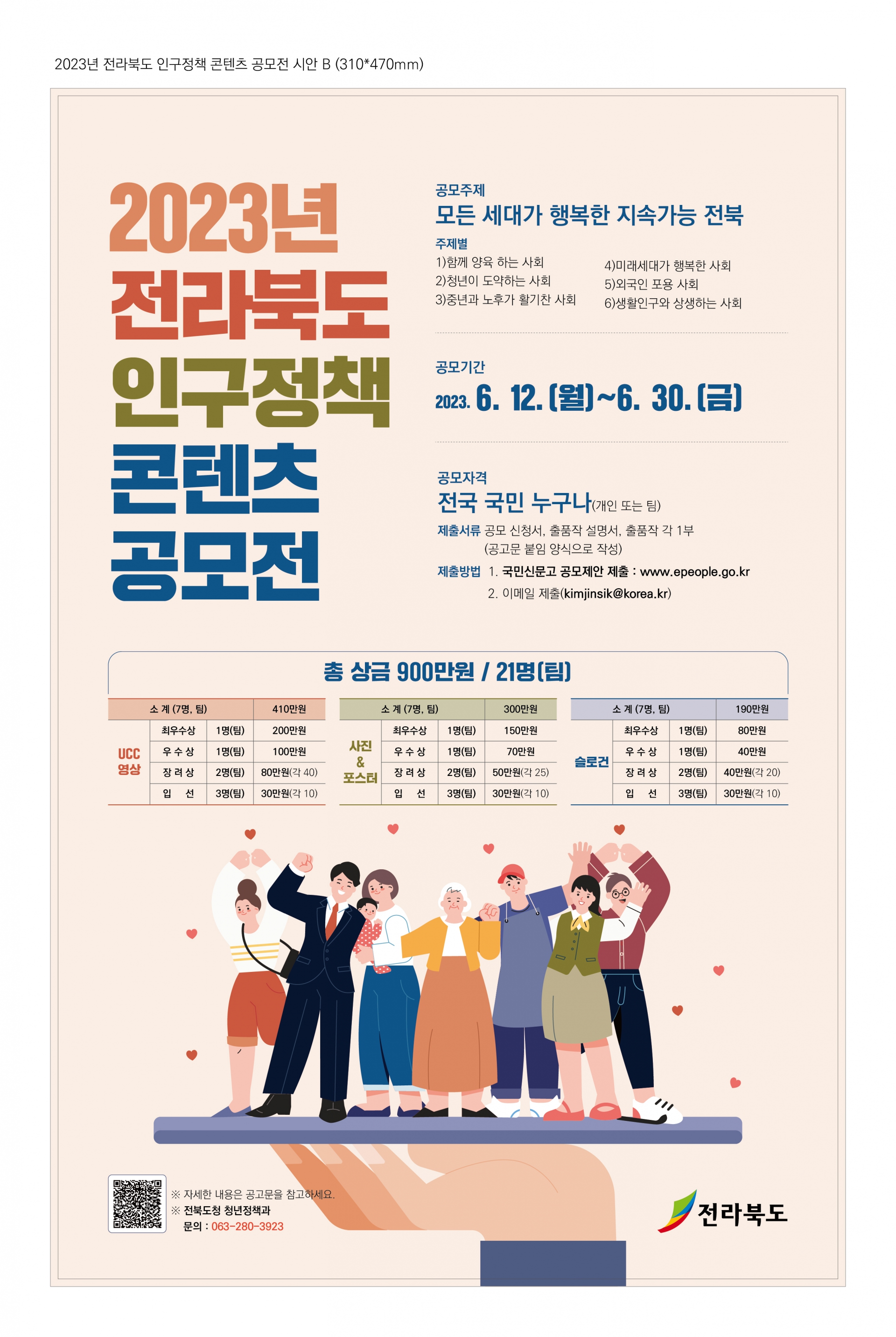 - 2023년 전라북도 인구정책 콘텐츠 공모를 개최합니다.