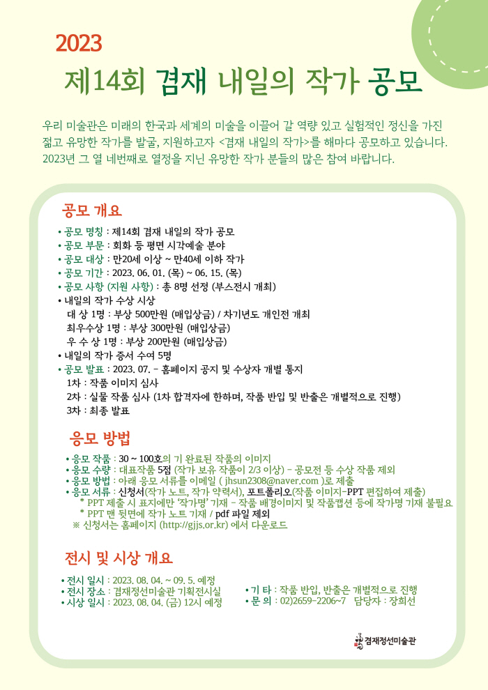 - 2023 제14회 겸재 내일의 작가를 공모하오니