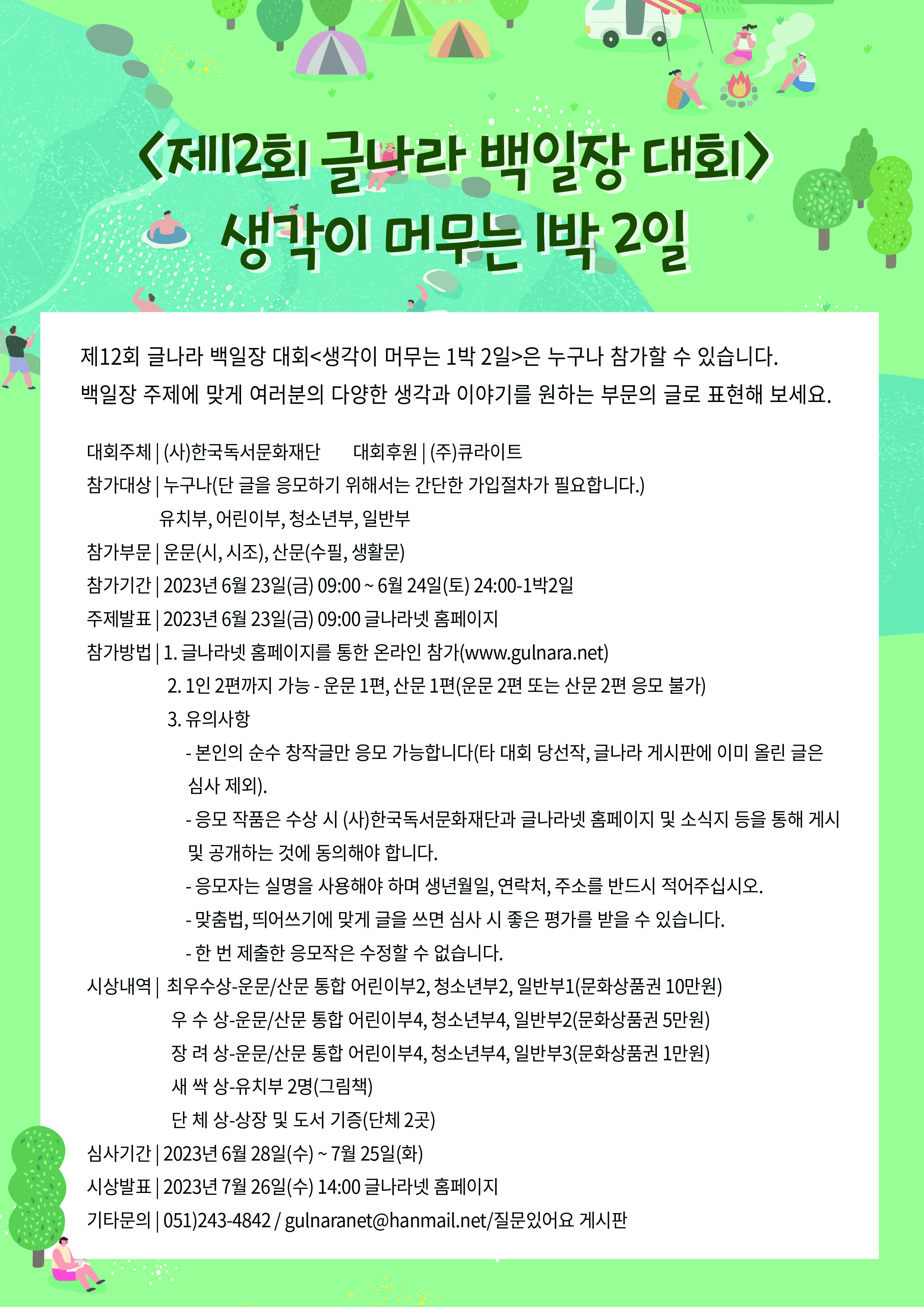 - 시상발표 : 2023년 7월 26일(수) 14:00 글나라넷 홈페이지