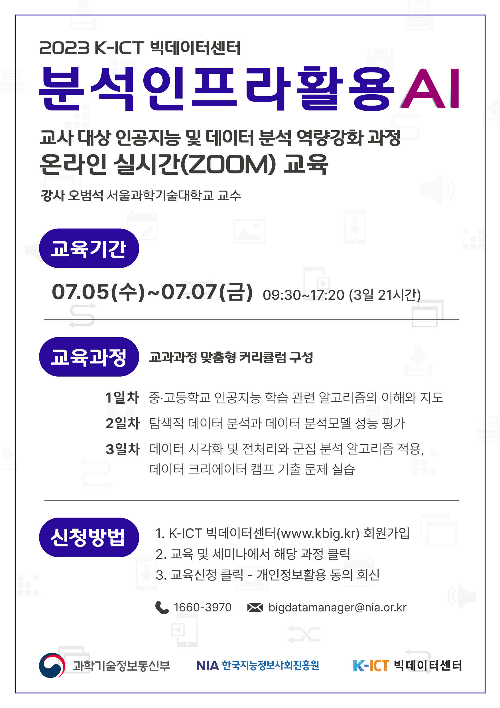 2023 K-ICT 빅데이터센터 분석인프라활용AI 교사 대상 인공지능 및 데이터 분석 역량강화 과정