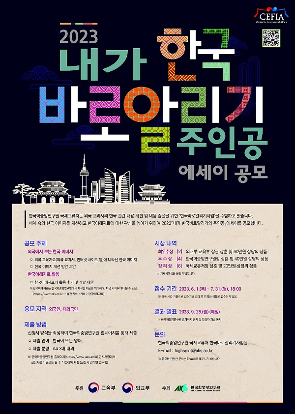 - 2023 내가 한국바로알리기의 주인공 에세이 공모전을 개최합니다.