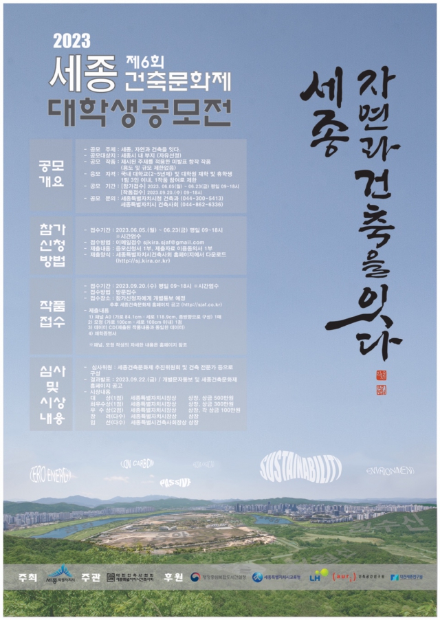 - 2023 제6회 세종건축문화제 대학생공모전을 개최합니다.