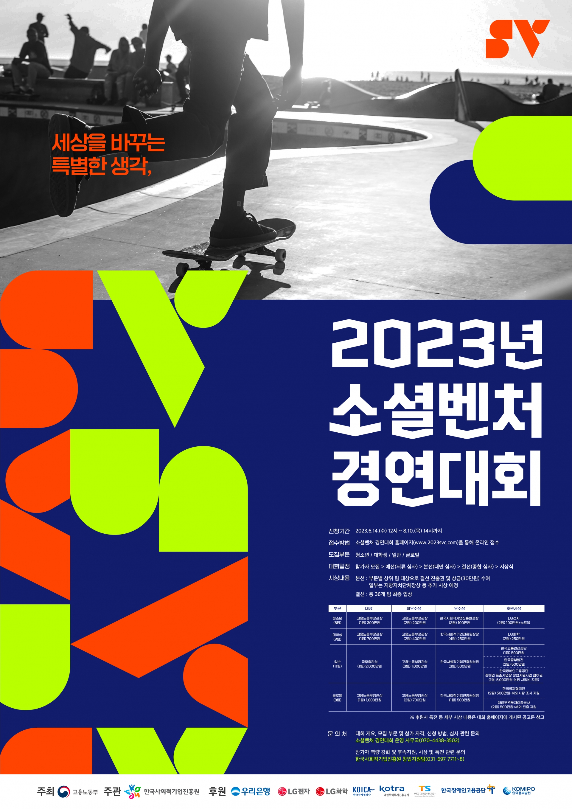 발굴하고 사업화를 지원하는 2023년 소셜벤처 경연대회를 개최합니다.