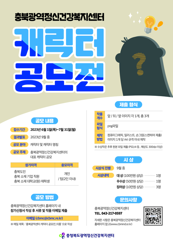 ※ 메일 제목: '충북광역정신건강복지센터 캐릭터 공모전_이름' 으로 작성