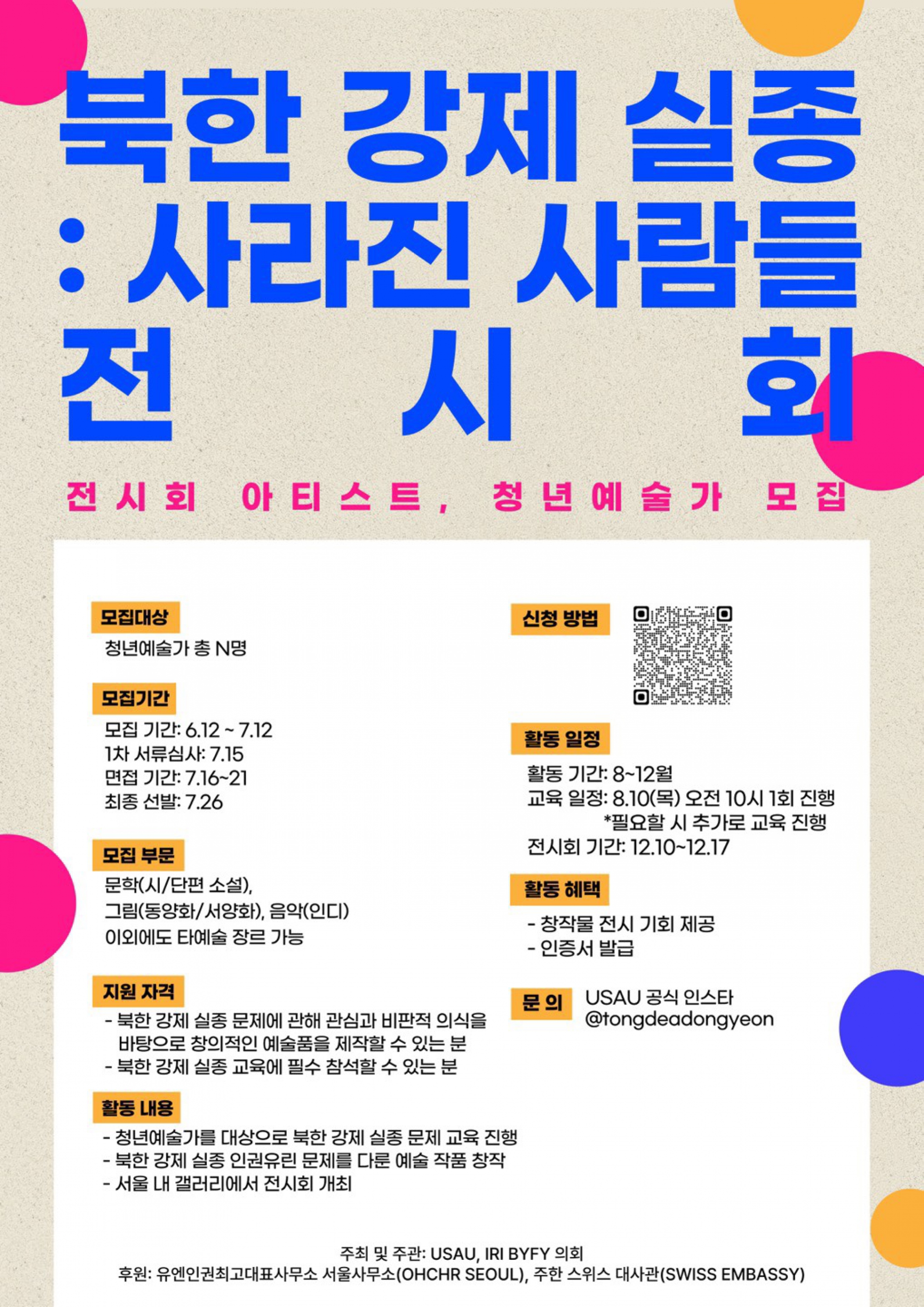 - 청년 예술가를 대상으로 북한 강제 실종 문제 교육 진행